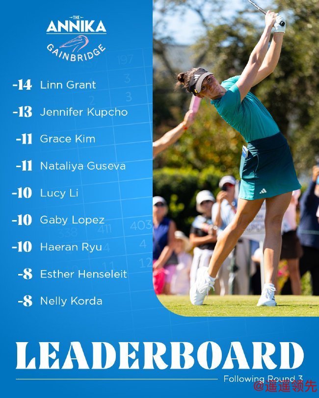 北京时间11月16日,林恩-格兰特(Linn Grant)周六在安妮卡锦标赛交出65杆,低于标准杆5杆,以一杆优势领跑。瑞典选手在比赛中5度抓鸟,其中两记15英尺推杆尤为关键,有望连续第六年全球至少一场胜利。